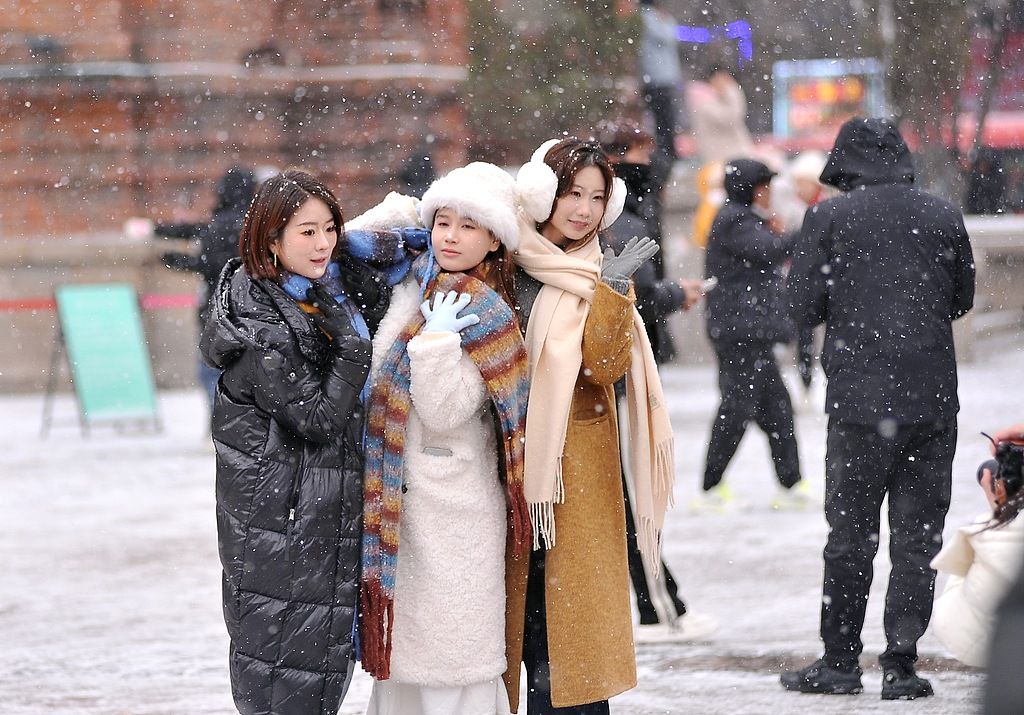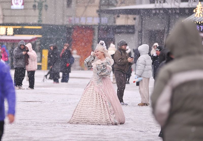 2025年11月8日,哈尔滨市迎来今冬首场降雪,城市披上银装,变成了一个白色的童话世界。在各处景点,游客们在雪中赏景、拍照。