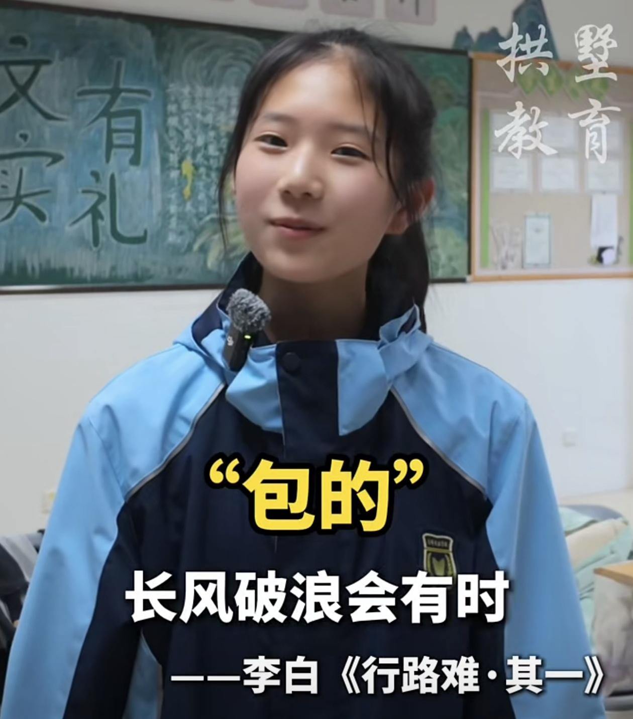 “我平时会特意积累这些古诗词,引用它们能让我的作文画龙点睛,没想到这次还能用来匹配热词。”作为学校和班级活动的常任主持人,万王钰对诗词有着特殊的热爱,“有时候路过门厅里的诗词墙,我会不自觉停下来读一读品一品,这让我们感觉诗歌不再是遥远的课文,而是我们身边触手可及的美好。”