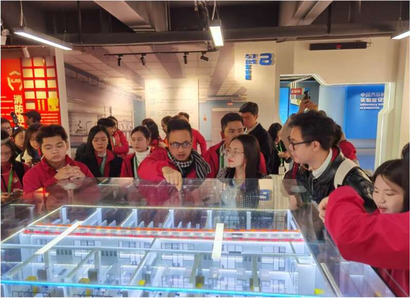 11月6日,陕西西安,来华参加“红色研学之旅”之“红星闪耀”研学营的越南青年走进西安交通大学·中国西部科技创新港实验室安全体验馆。这里是中国首个实验室安全主题专业性场馆。中青报·中青网记者 王梓/摄