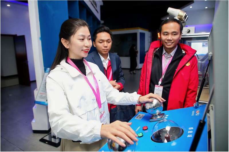 11月6日,陕西西安,越南青年在航天六院通过互动设备体验航天科技相关操作流程。主办方供图
