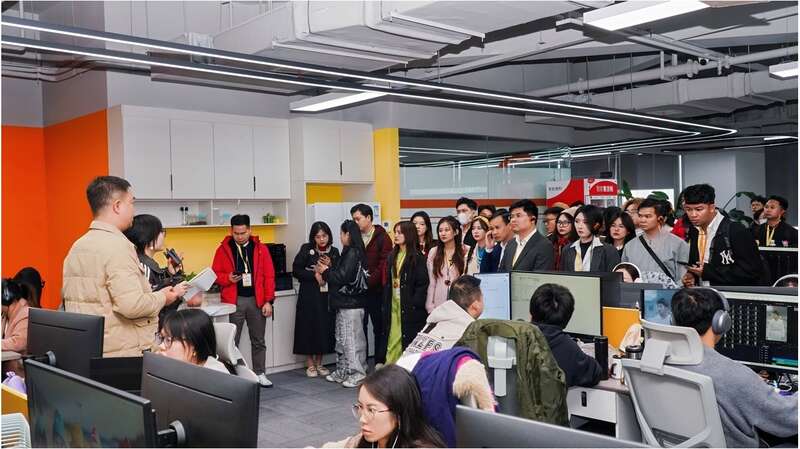11月6日,陕西西安,越南青年参观短剧创作公司,了解短剧产业发展情况。 主办方供图