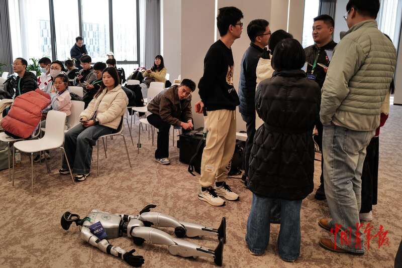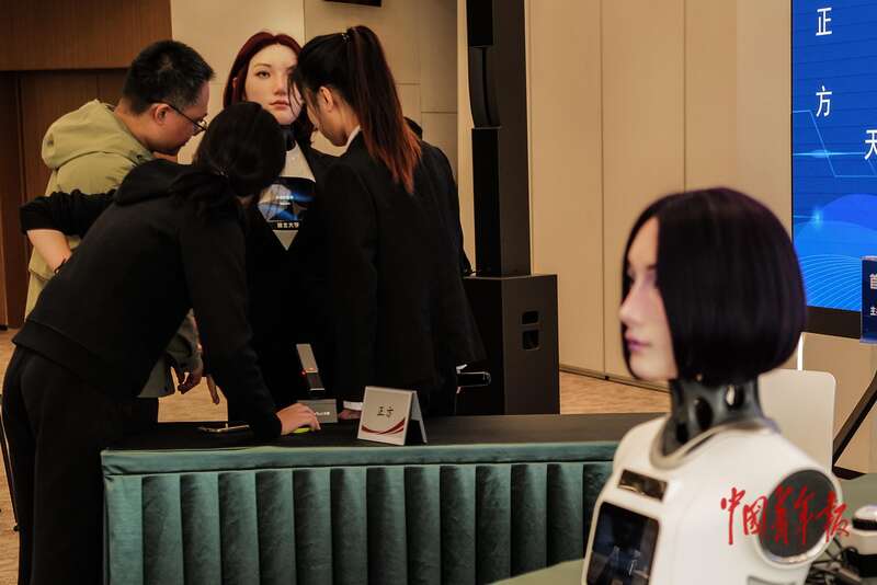 11月9日,北京经济技术开发区(北京亦庄),首届中国(国际)机器人辩论大赛决赛休息间隙。 中青报·中青网记者 赵迪/摄