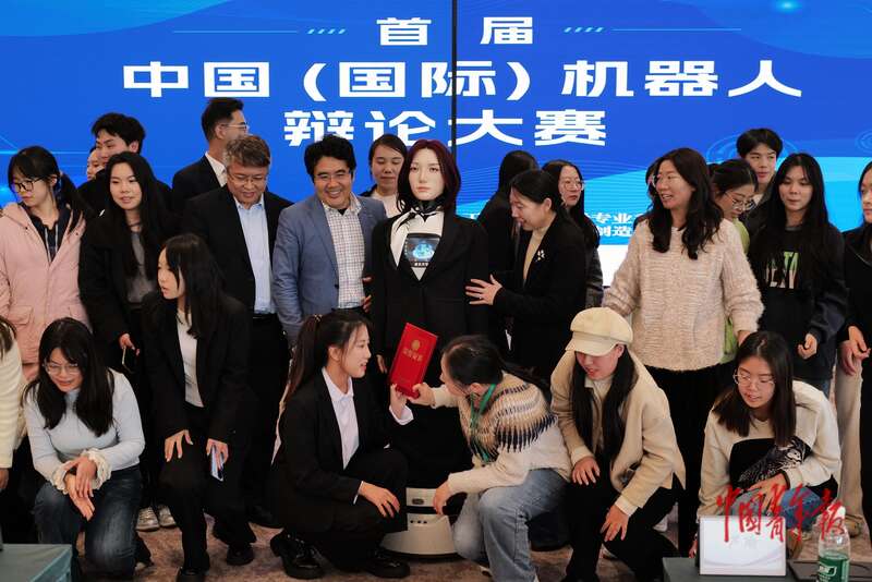 11月9日,北京经济技术开发区(北京亦庄),首届中国(国际)机器人辩论大赛决赛后,参赛选手和现场嘉宾等待合影。 中青报·中青网记者 赵迪/摄