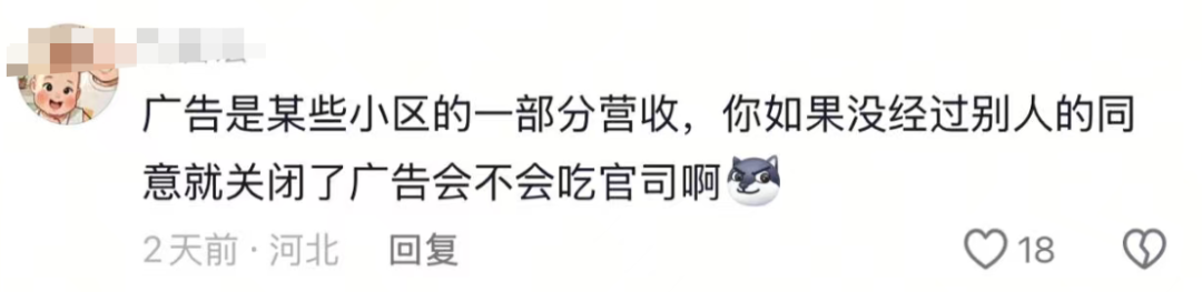 他还表示,从初中开始他就被迫接触电梯广告,虽然不少居民都对这种“入侵式”广告很不满,但始终没有人愿意真正动手关掉。