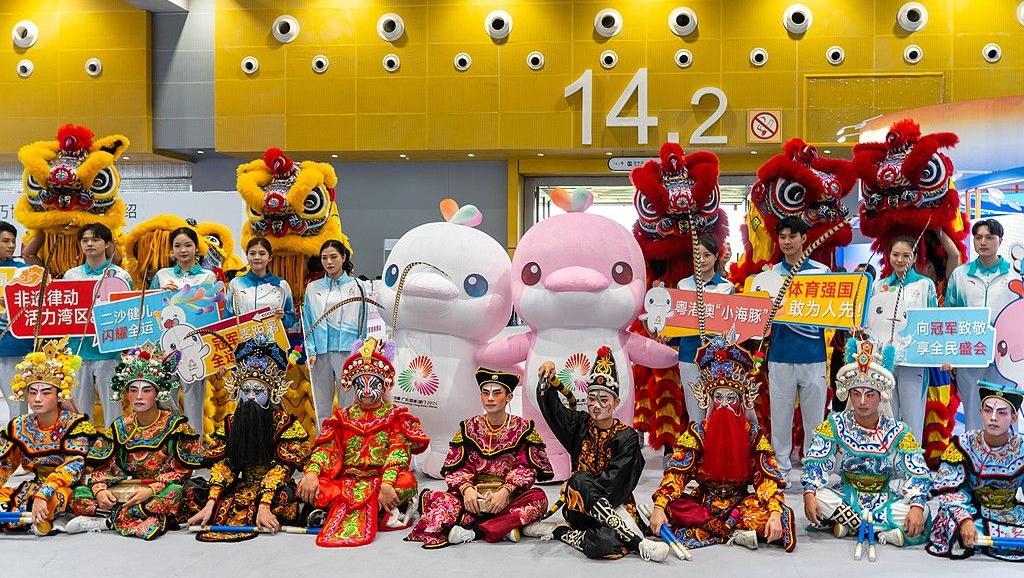 广州:全运会吉祥物英歌舞醒狮齐亮相