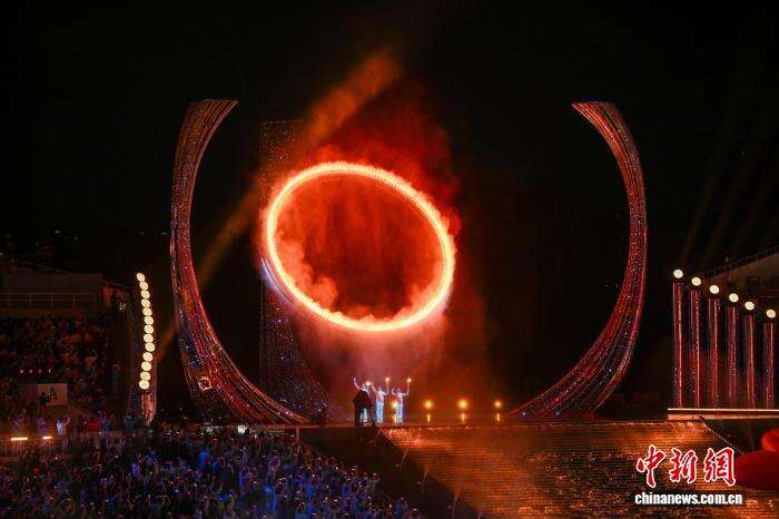第十五届全国运动会的圣火,在南粤大地画了一个圈——象征粤港澳三地的三根支柱共同托举起圆形火环,点燃大湾区深度交融的又一篇章。
