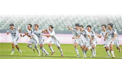 上海队(足球男子20岁以下组)球员赛后庆祝。新华社记者 丁增尼达摄