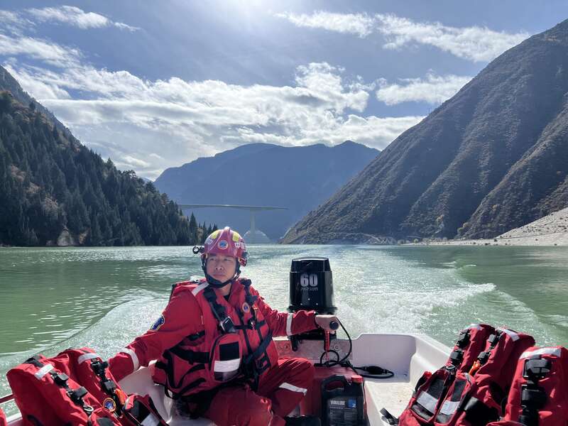 地灾发生后,英戈洛村及部分周边村的村民、水库施工人员被困在了大桥的另一边,他们通过水库清渣打捞船、冲锋舟等为村民运送必要的物资。