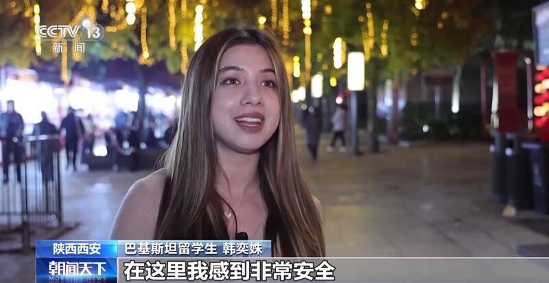 巴基斯坦留学生 韩奕姝:无论何时夜晚出游,我都能感受到西安的美丽。在这里我感到非常安全,可以自由探索城市的每个地方。当地人非常乐于助人,迷路时会主动指路,遇到问题时,警察和保安也随时准备提供帮助。