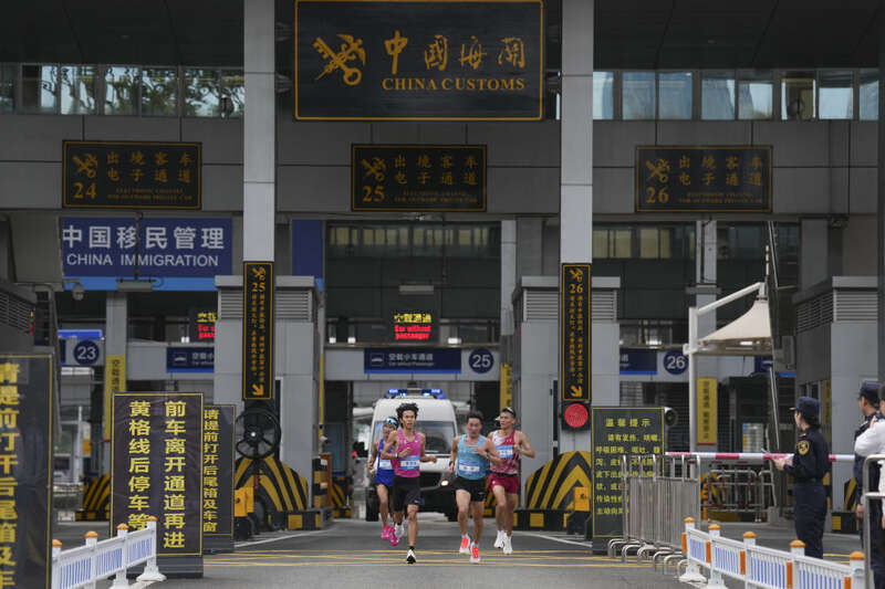 11月15日,参赛选手在比赛中经过深圳湾口岸。新华社记者 丁增尼达 摄