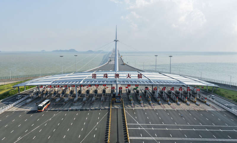 11月8日,参赛选手经过港珠澳大桥闸口。 新华社记者 邓华 摄