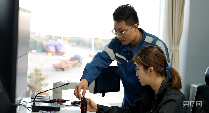 镜头从岸线来到西联公司件杂货数智中心,这里是整个码头的大脑。落地窗外,“中远海运长青”轮稳稳靠泊。数智中心内,工作人员对着电脑屏幕进行操控,上面显示着码头各处的实时画面,有的电脑前还有方向盘,电脑桌下还有刹车、油门。“这里是操控IGV的,通俗来说就是自动驾驶的运输车,在这个操作台上,就可以实现远程监控,有点像打游戏。”青岛港西联公司操作部副经理孙长杰介绍。