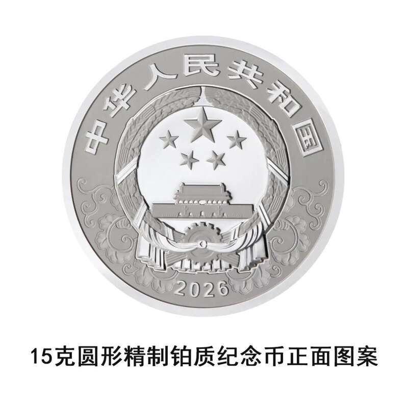 15克圆形铂质纪念币为精制币,含纯铂15克,直径27毫米,面额500元,成色99.9%,最大发行量10000枚。