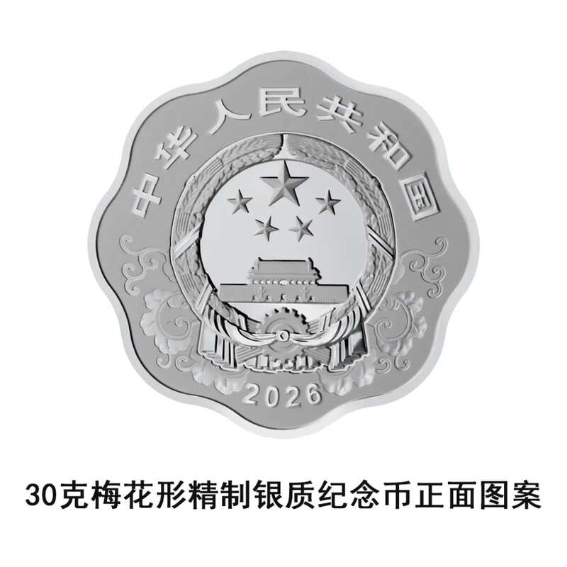 30克梅花形银质纪念币为精制币,含纯银30克,外接圆直径40毫米,面额10元,成色99.9%,最大发行量60000枚。