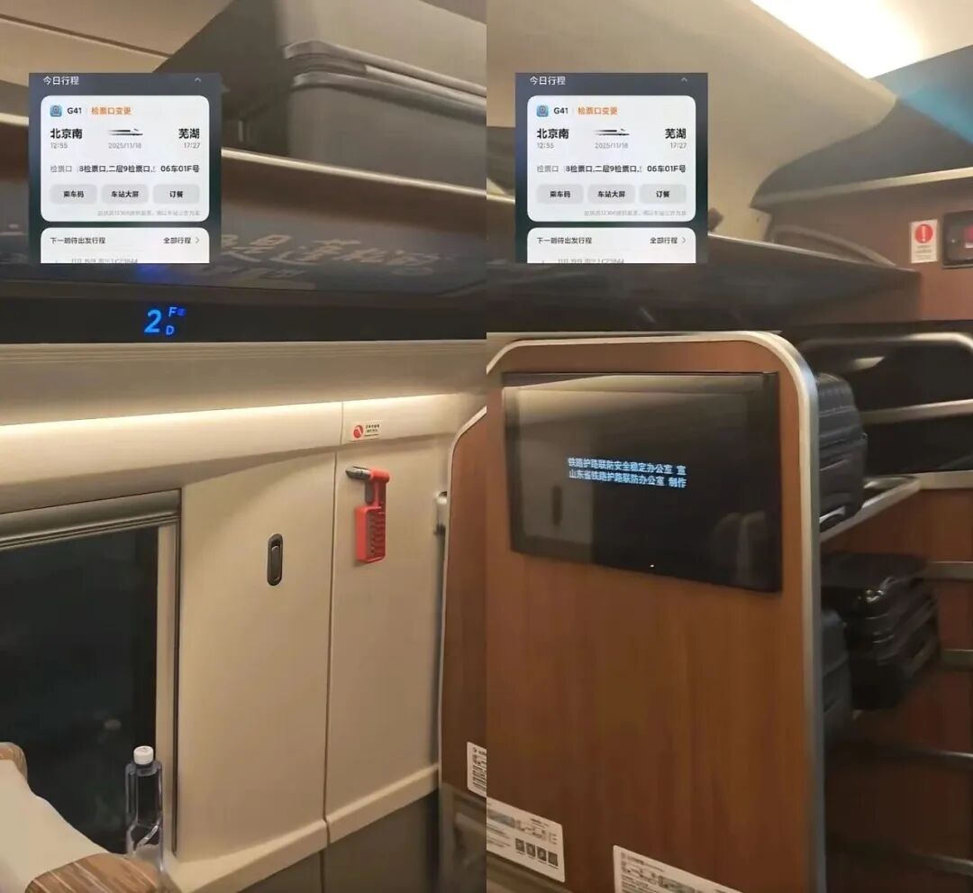 此前据杭州日报报道,有网友在社交平台发视频称,自己乘坐11月18日由北京南开往芜湖的G41次列车,车票信息显示,座次为06车01F,但上车后发现,06车厢内并无01F的座位。