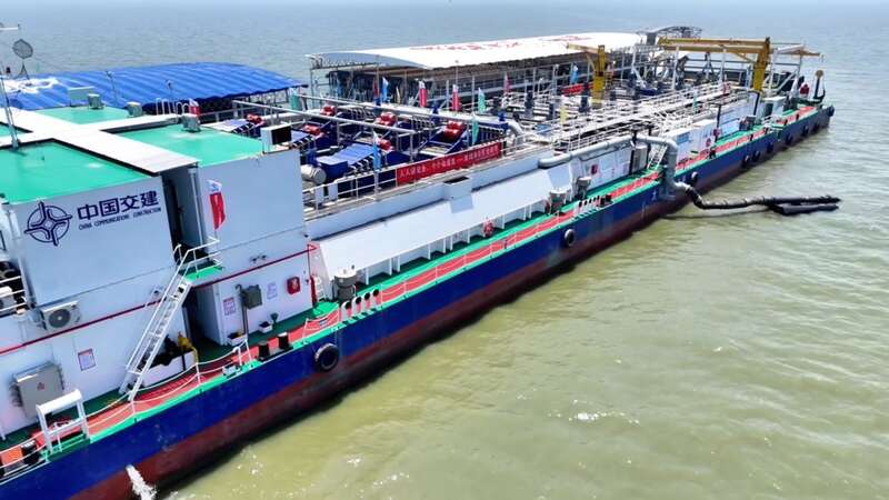 在几十公里外的无锡宜兴水域,一座名为“太湖之光”的水上“移动工厂”正24小时运转。它由多艘作业船串联而成,管道纵横、设备密布。
