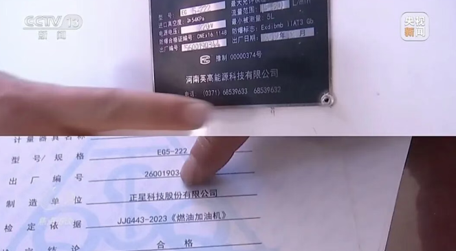 正在使用的加油机上标注的厂家,跟加油站站长现场提供的检定合格证书上的厂家竟然不是同一家。