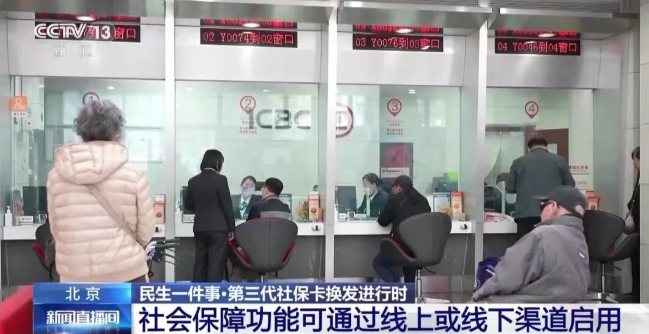 此外,为方便老年人换发第三代社保卡,北京市人力资源和社会保障局推出了字体更大、页面更简洁的适老版申领页面,同时协同多家合作银行,提供上门办理等便民服务。