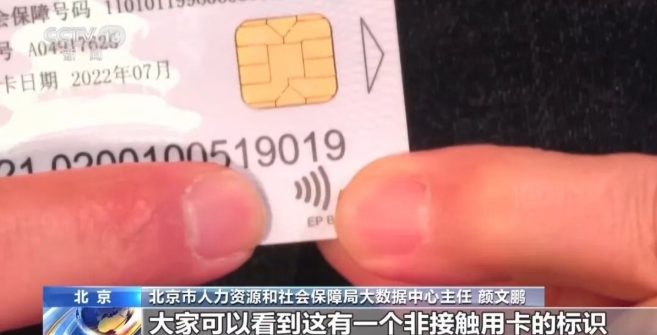 北京市人力资源和社会保障局大数据中心主任 颜文鹏:这一张是社保卡的样卡,它比第二代更加安全,它加载了新的国密算法。另外它更加便捷,卡上有一个非接触用卡的标识,持卡人可以通过贴卡使用的方式,便捷地享受它提供的一些服务。