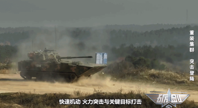 05式两栖步战车有30毫米口径的自动炮,射速非常快,在发射的瞬间,就可以倾泻大量的弹药,形成非常密集的火力压制。同时,它也可以发射烟雾弹、导弹,可以说是一专多能。
