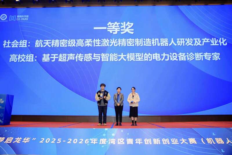 自9月26日启动以来,大赛吸引了众多湾区青年创业者积极参与。经过初赛选拔,来自社会组、高校组的各八强项目进入决赛。经过激烈角逐,社会组项目《航天精密级高柔性激光精密制造机器人研发及产业化》与高校组项目《基于超声传感与智能大模型的电力设备诊断专家》最终脱颖而出,分别荣获一等奖。