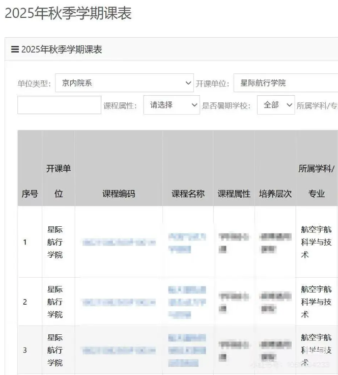 这名同学向记者出示的课表截图显示,有名为“星际航行学院”的开课单位。