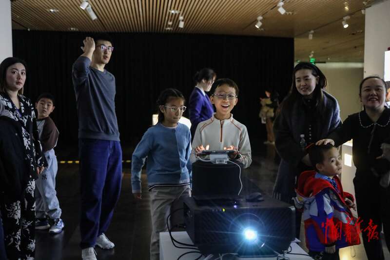 11月22日,北京清华大学艺术博物馆,一名小朋友在体验一款互动游戏。中青报·中青网记者 孔斯琪/摄