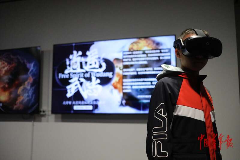 11月22日,北京清华大学艺术博物馆,一名小朋友在体验一款VR游戏。中青报·中青网记者 孔斯琪/摄