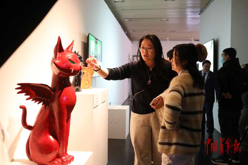 11月22日,北京清华大学艺术博物馆,一名艺术家向来宾介绍作品。中青报·中青网记者 孔斯琪/摄