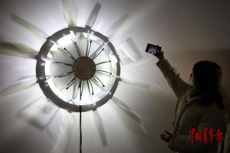11月22日,北京清华大学艺术博物馆,一名参观者在拍摄一件装置作品。中青报·中青网记者 孔斯琪/摄