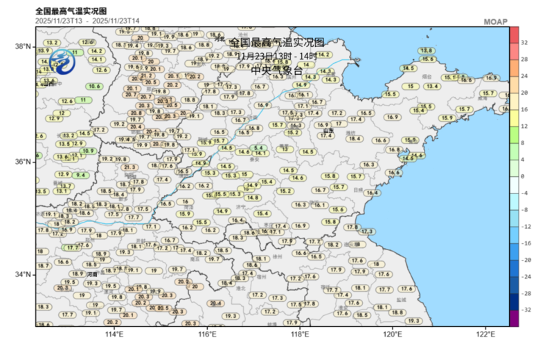 今天,石家庄最高气温19.6°C,西安18.1℃,北京16°C,沈阳13.4°C,比常年同期偏高8℃至12°C。
