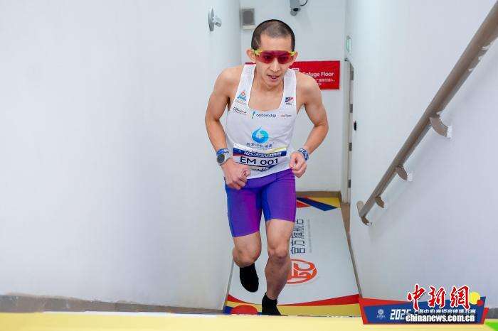 11月22日,2025上海中心高塔竞速挑战赛开赛,图为比赛中的马来西亚选手苏为庆。 (赛事主办方供图)