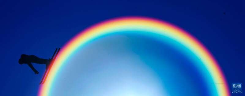 2024年12月31日,一名滑雪爱好者在吉林市万科松花湖度假区举办的滑雪趣味跳高赛中。新华社记者颜麟蕴摄