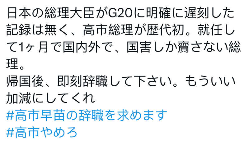 此举也引发了日本网友的强烈质疑和不满,有网友评论:“日本历史上从未有过首相明显在G20峰会迟到的先例,高市早苗是第一个。上任仅一个月,她就给日本国内外带来了无尽的灾难。请回国后立即辞职,真是够了!”