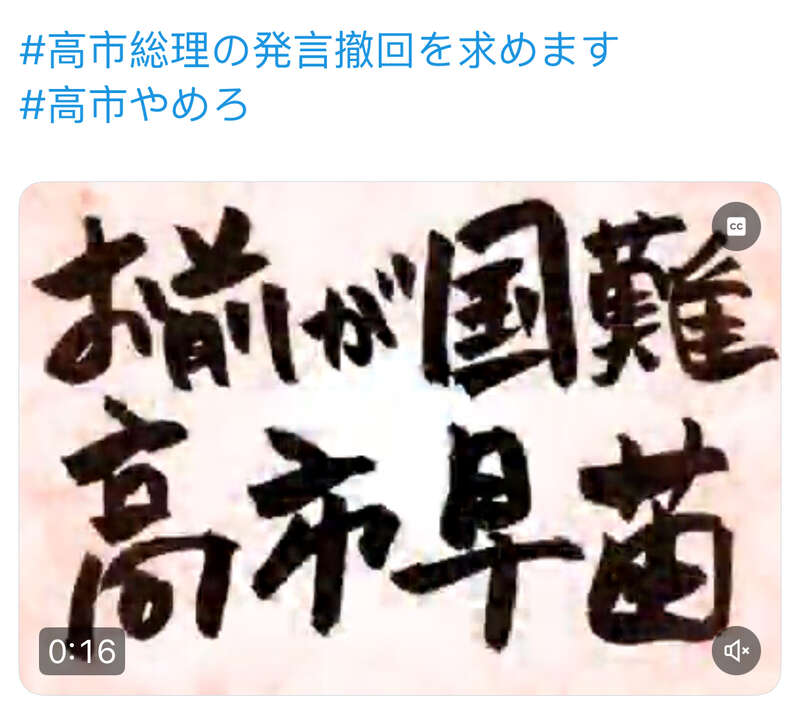 一名日本网友说:“我们举行了紧急抗议示威活动,要求首相高市早苗收回她关于国家正处于‘生存危机状态’的言论……我们没有时间培养一位首相,如果她只会煽动战争,我希望她立即辞职。”