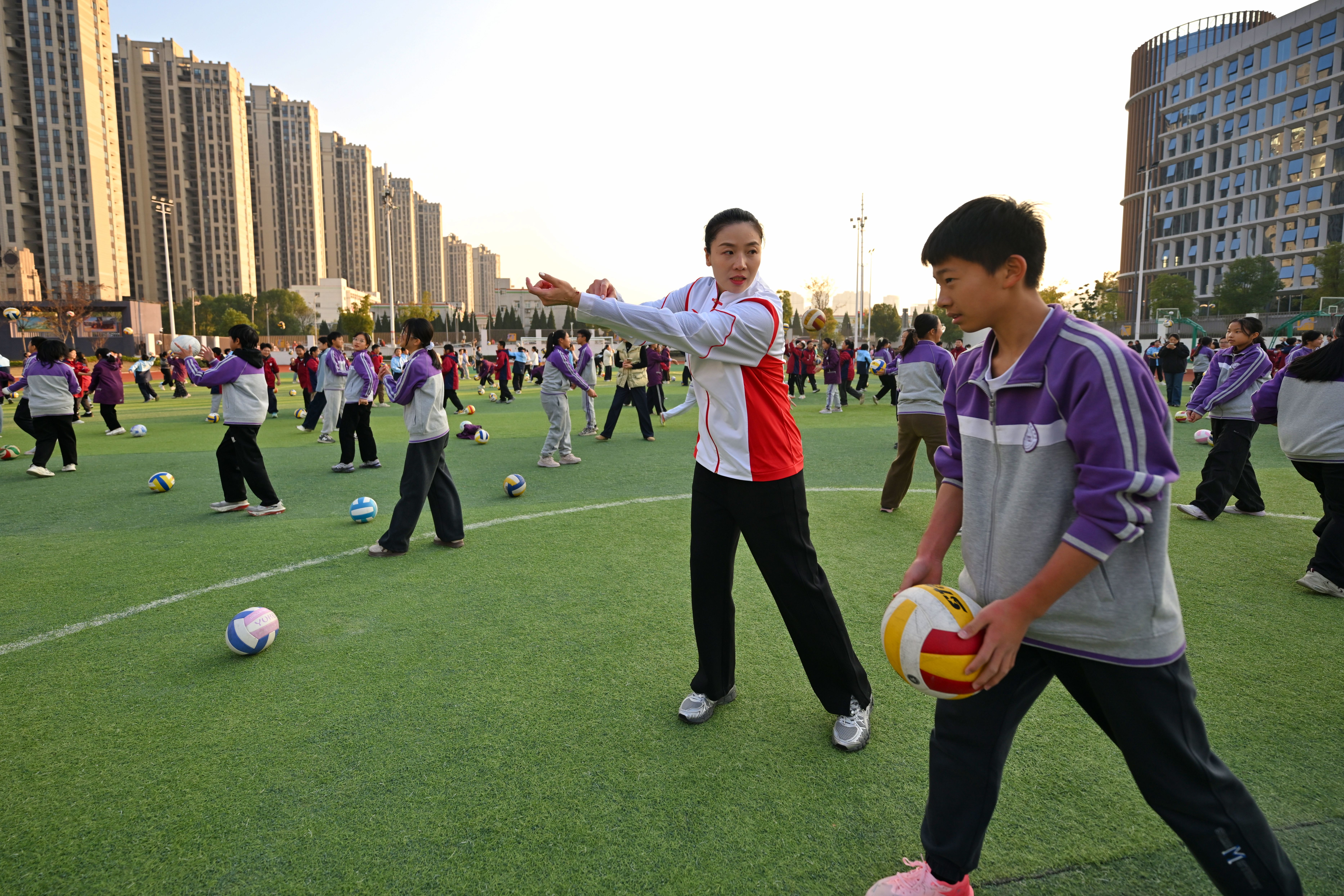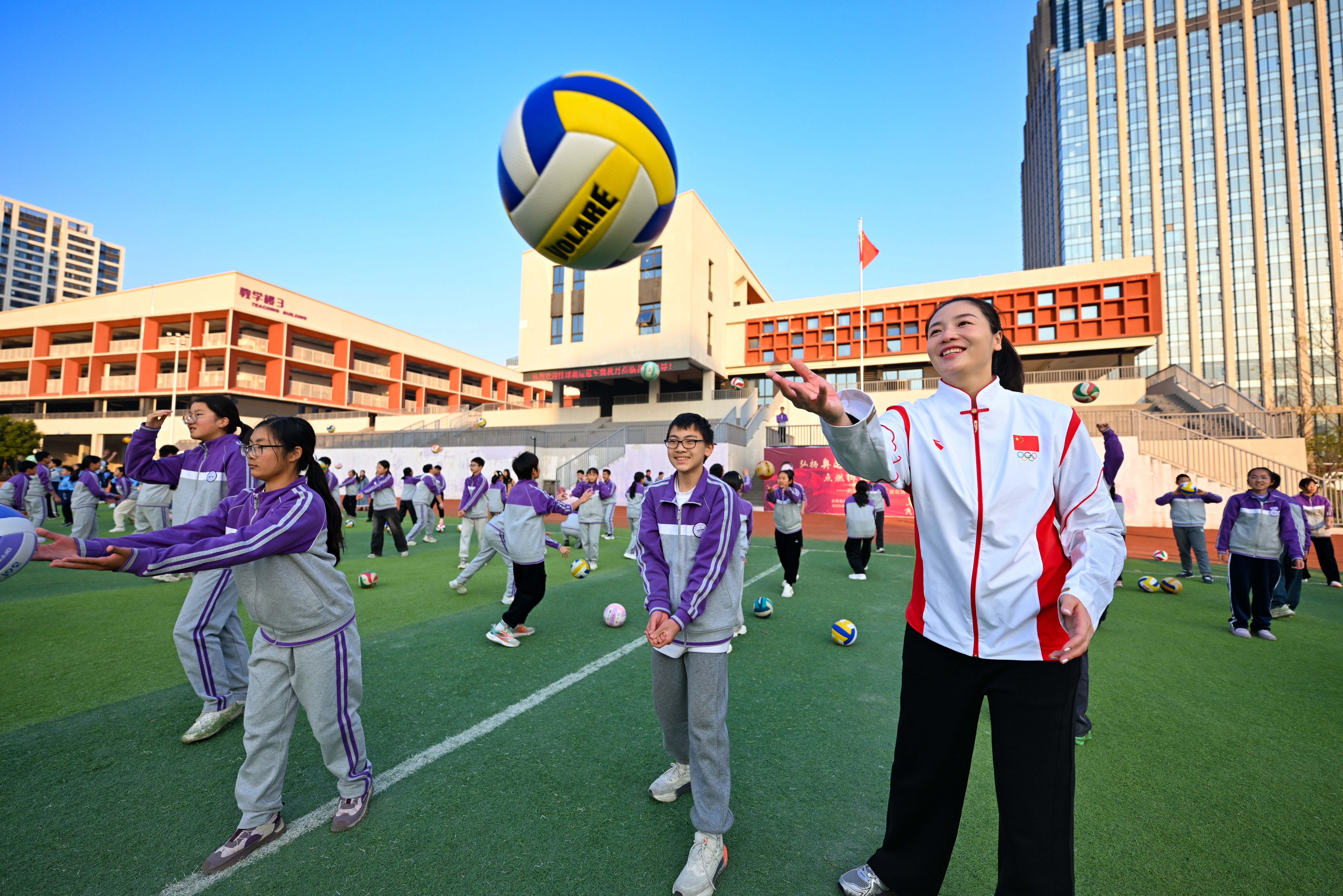 本次“冠军进校园”系列活动同步走进合肥八所中小学。在合肥市师范附属小学、育新小学等校园里,冠军们与青少年面对面互动交流,通过趣味游戏、技能展示、故事分享等形式传递体育力量。合肥高新火炬中学的校园中,千余名师生聆听魏秋月的成长故事。她分享道:“体育运动能提升抗挫折能力与团队协作力,排球作为集体项目,能够让大家在并肩拼搏中体会‘小我融入大我’的力量,在感悟体育魅力中传承体育精神。”离开赛场后,魏秋月从未真正离开过体育,从未离开过排球,而是不断走到青少年身边,她说:“希望能够为青少年种下体育的种子,让更多孩子了解中国排球故事,传承女排精神。”前男篮国手吴前则勉励同学们:“篮球场上没有捷径,唯有持之以恒的努力与坚守,才能实现心中的目标,希望大家在体育锻炼中练出强健体魄,更练出不服输的拼劲——这股朝气与韧劲儿,正是振兴‘三大球’的希望!”