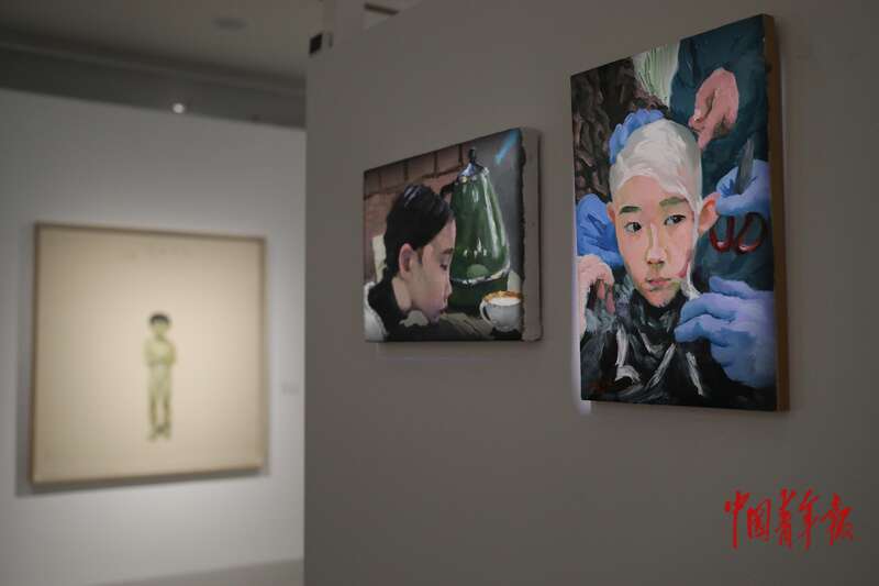 11月23日,北京泰康美术馆,刘小东大型个展“河东,河西”现场,刘小东的油画作品《小樱桃之一》《小樱桃之二》。中青报·中青网记者 孔斯琪/摄