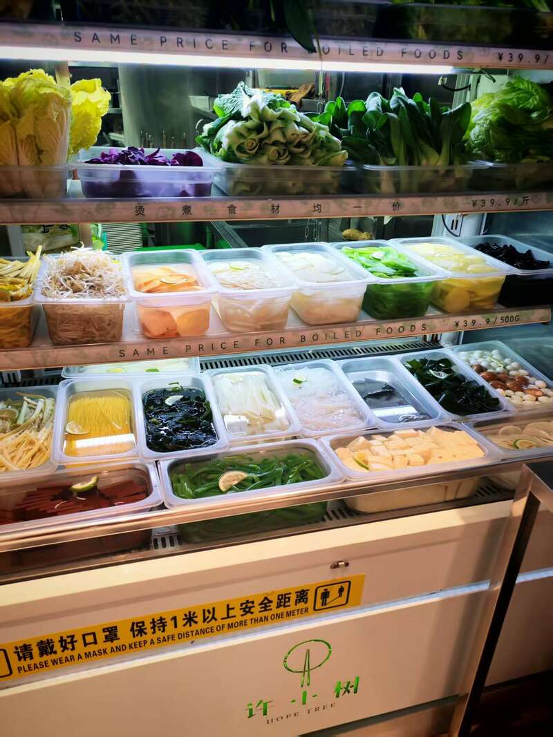 在许小树北京SKP店,记者又选了没泡在水里的生菜、肥牛、鱼片、鸡胸肉,有菜有肉营养搭配更合理,结账价格13.64元,比纯素的豆腐、藕片等组合还便宜。所以,在社交媒体上,很多消费者发帖交流经验,容易吸水的豆腐、木耳等素菜建议少选,一定要选就轻微抖动沥沥水。