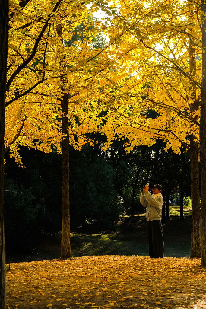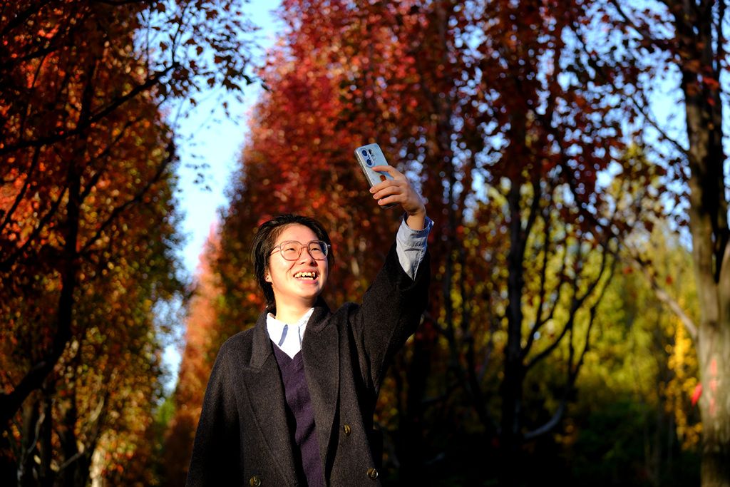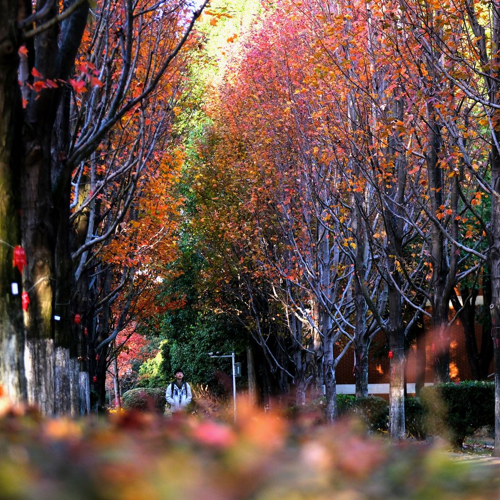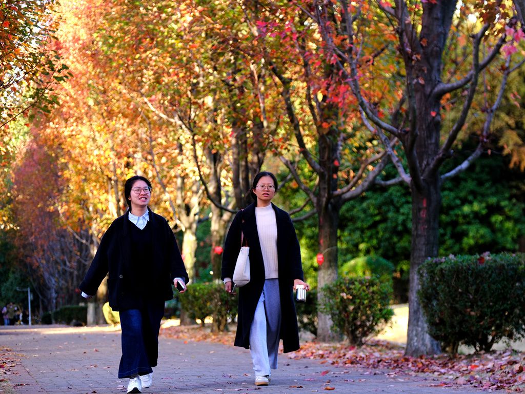 2025年11月25日,长沙,湖南农业大学的彩叶斑斓,吸引师生前来欣赏美景。