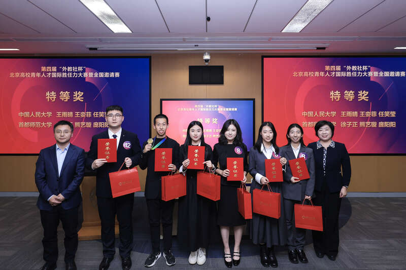 中国人民大学党委副书记、副校长王易在颁奖典礼上,勉励各位青年学子进一步坚定理想信念,勇于创新创造,积极参与全球可持续发展实践,为应对全球性挑战、推动构建人类命运共同体贡献更具韧性的中国智慧和中国方案。上海外语教育出版社社长兼总编辑丁毅赞扬了参赛选手的卓越表现,认为他们以专业视角拆解全球复杂议题,充分彰显了中国青年讲好中国故事的自觉,生动诠释了新时代青年国际胜任力的内涵。