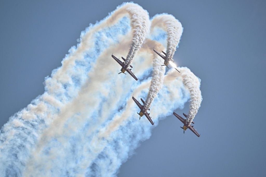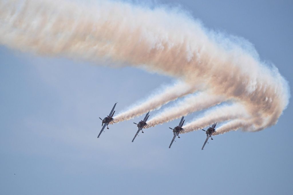 2025年11月28日,广东珠海,2025亚洲航空展期间,南非“AERO”特技飞行表演队进行表演。本届亚洲航空展于11月27日至30日举行。