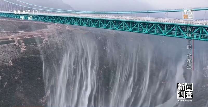 花江峡谷大桥每天上演两场水幕表演,300米宽的水幕自625米高的桥面飞泻而下,形成了全球最高的人工瀑布奇观。而这一震撼景象,其实是大桥建过程中意外的惊喜。