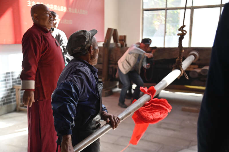 常山县传统木榨油坊开榨。中青报·中青网记者 李剑平/摄