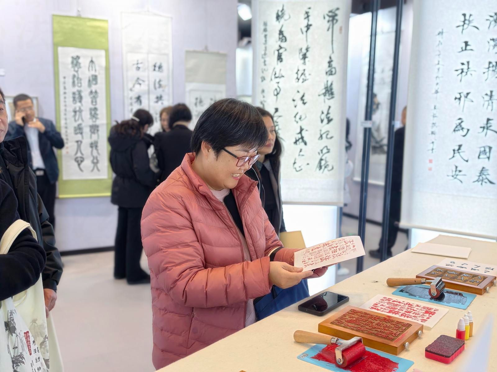12月1日,北京市“宪法宣传周”系列活动启动仪式在北京大运河博物馆举行。在法治文化作品征集评选活动中获奖的作品也将在大运河博物馆集中展出。图为参加启动仪式的观众在体验区完成法治内容的拓印。中青报·中青网记者 胡宁/摄