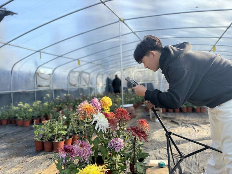 “家人们看这盆‘墨菊’,花瓣层层叠叠,耐寒又好养,喜欢可以直接拍!”11月18日,在河北省涞水县王村镇祖各庄村的菊花种植基地内,“00后”青年于淼正对着手机屏幕,熟练地向快手、抖音直播间里的观众介绍特色菊花产品。这位拥有20多万粉丝的“乡村主播”,是一名选择回归乡土的大学生。他将儿时对菊花的热爱,转化为带动乡亲增收的“美丽事业”。