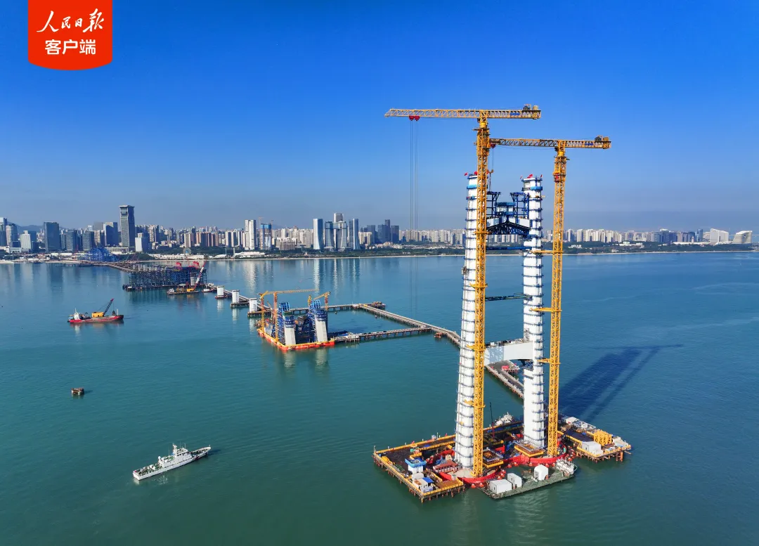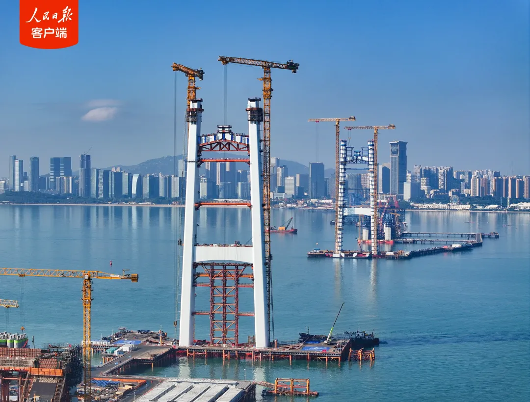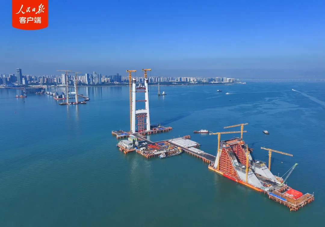 12月1日晚,厦金大桥厦门段关键控制性工程刘五店航道桥主塔完成封顶。大桥建设自此从“立塔成型”转入“悬索成桥”施工阶段,为后续主缆架设、钢箱梁吊装等工序奠定坚实基础。