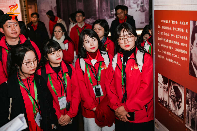 12月1日,云南昆明,越南青年走进西南联大博物馆。在听到西南联大迁滇之初,尚无专属校舍,全凭租借房舍艰难办学的往事时,他们在展板前驻足良久,神情中满是动容与敬佩。中青报·中青网记者 赵婷婷/摄
