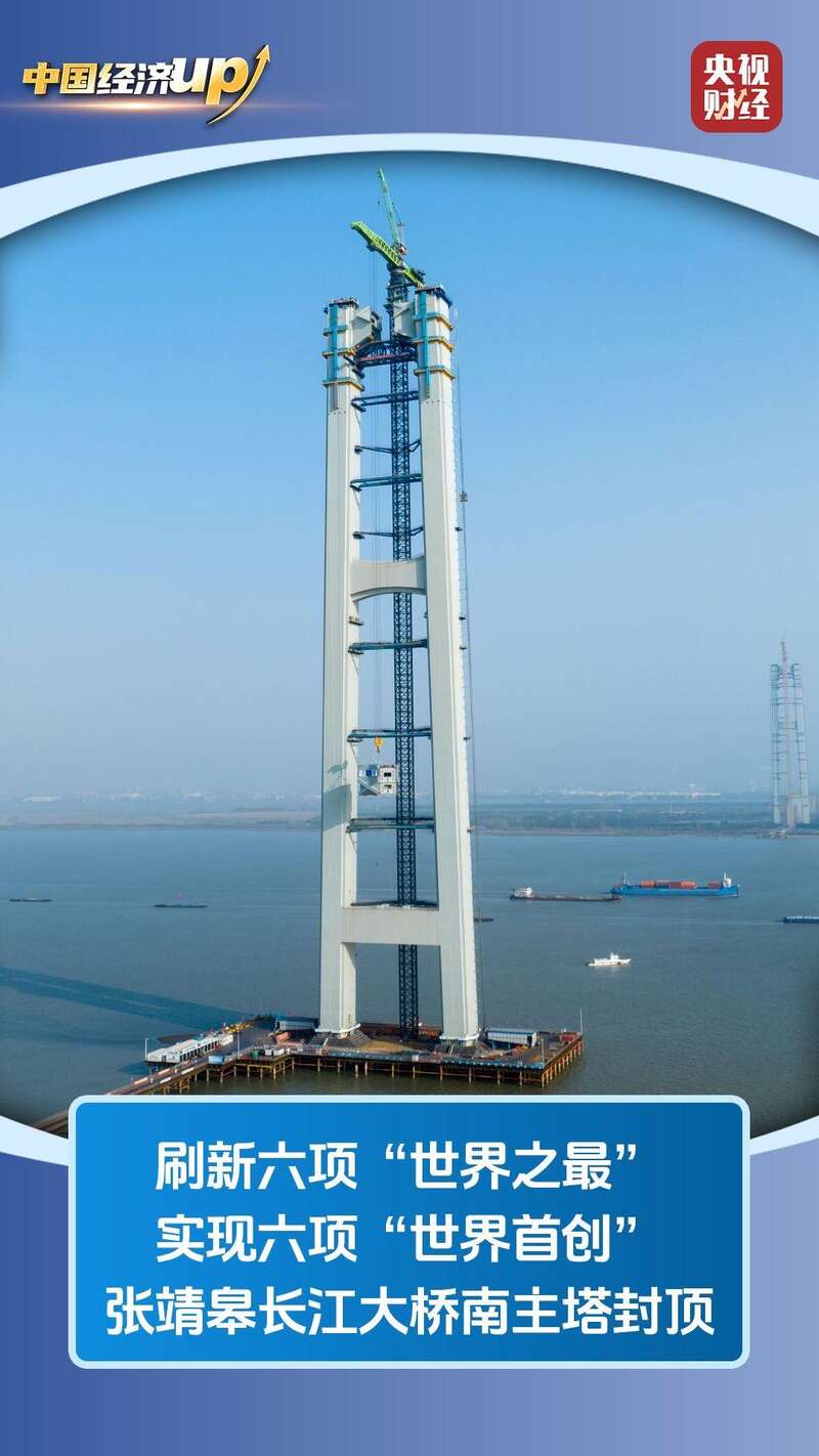 张靖皋长江大桥南主塔封顶