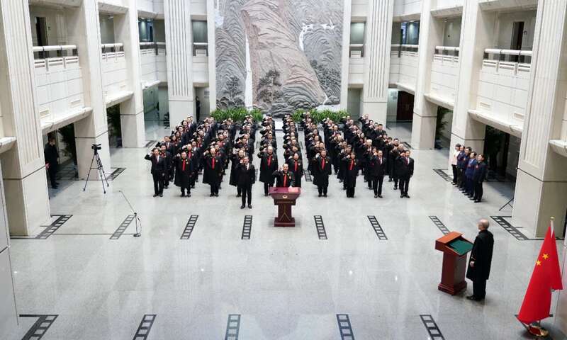 “今年是我国全民普法40周年,前不久施行的法治宣传教育法首次将‘习近平法治思想’写入法律,在这一历史节点举行宣誓仪式,具有重要意义。”张军指出,要把誓言铭记于心、熔铸于魂、力践于行,坚定宪法自信、增强宪法自觉,带头做维护宪法尊严、保证宪法实施的表率。要铸牢政治忠诚,坚持以习近平新时代中国特色社会主义思想为指导,深入学习贯彻习近平法治思想,真正把增强“四个意识”、坚定“四个自信”、做到“两个维护”内化于心、外化于行,更加自觉把党的绝对领导落实到司法审判工作各环节、全过程;强化担当作为,把贯彻落实党的二十届四中全会精神与贯彻落实《中共中央关于加强新时代审判工作的意见》有机结合,聚焦“十五五”时期经济社会发展目标任务,依法公正高效审判执行案件,做实定分更重止争,积极主动为大局服务、为人民司法;践行初心使命,时刻牢记权力来自人民,自觉接受人民监督,始终坚持“如我在诉”,努力让人民群众在每一个司法案件中感受到公平正义,通过提高司法公信力推动宪法深入人心;坚守清正廉洁,牢固树立依宪履职、依宪用权的理念,自觉在宪法和法律范围内活动,严守权力边界、规范司法行为,一体推进政治素质、业务素质、职业道德素质建设,永葆清正廉洁的政治本色。