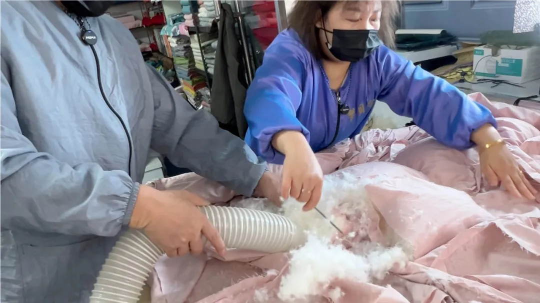 记者探访羽绒服翻新手工店。图片来源:大众新闻-大众日报
